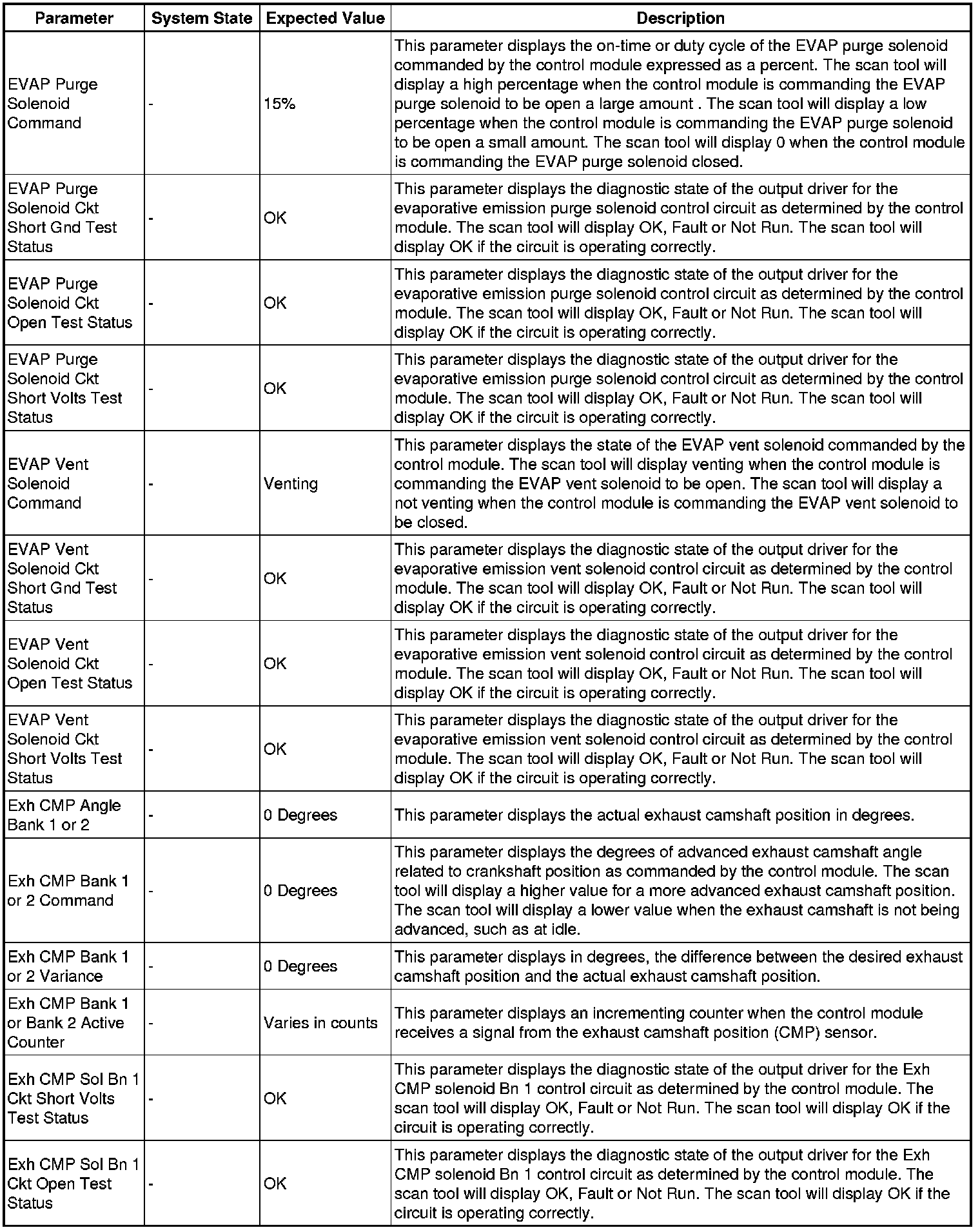 The scan tool values from a properly running engine may be used for comparison with the engine you are diagnosing. The engine scan tool data list represents values that would be seen on a normally running engine.