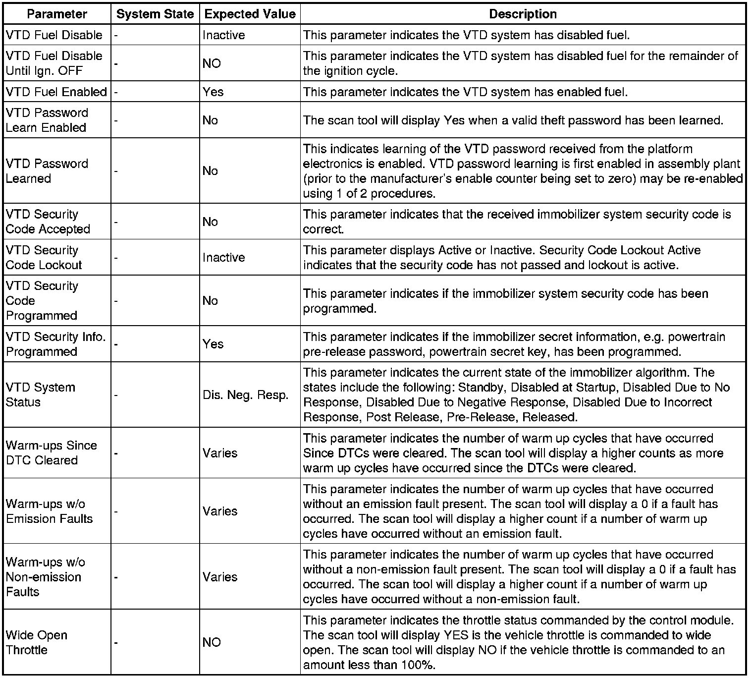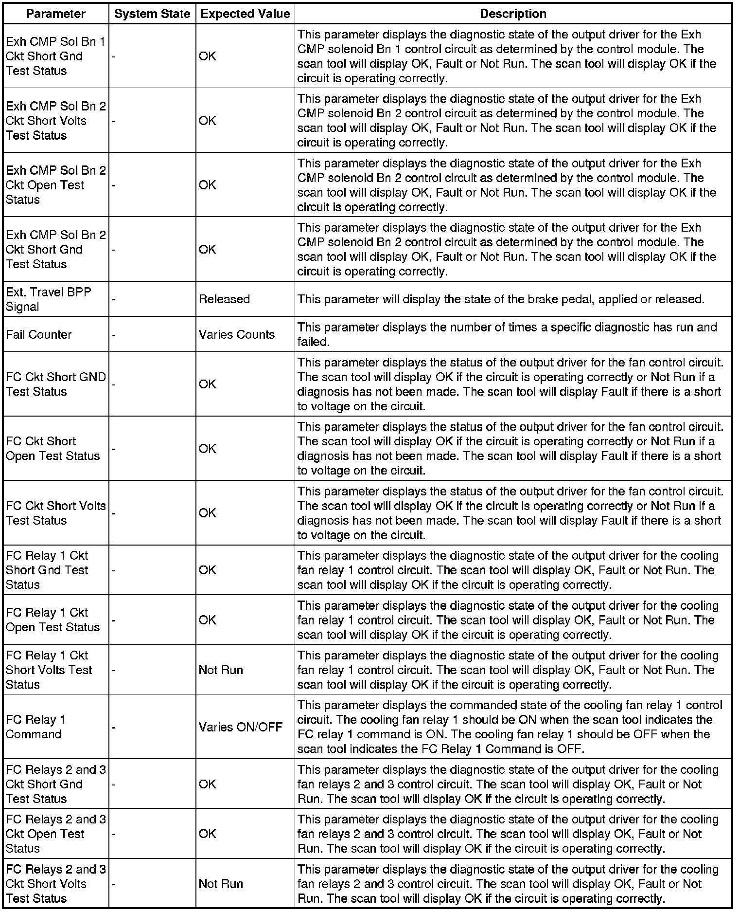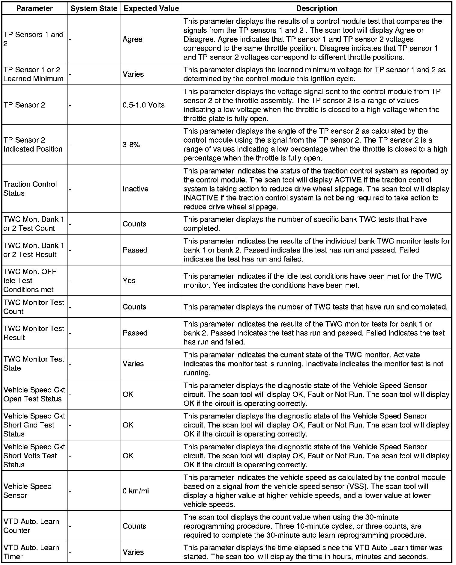 Only the parameters listed below are referenced in this service manual for use in diagnosis.
