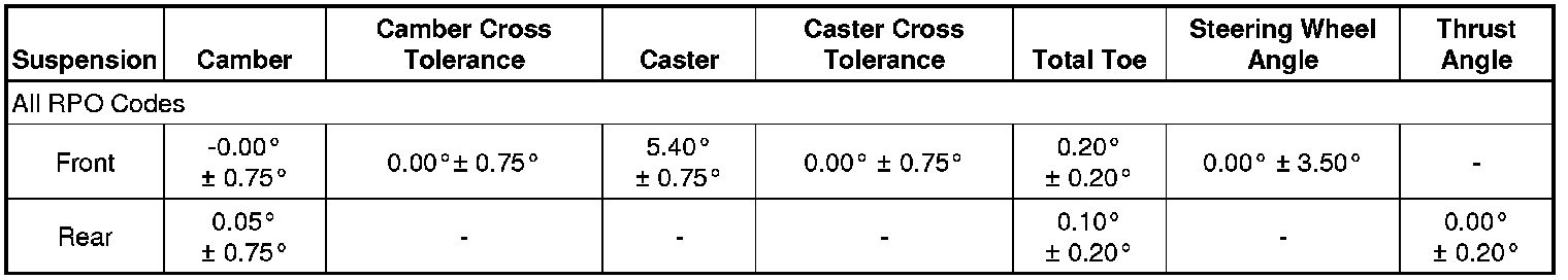 Wheel Alignment Specifications