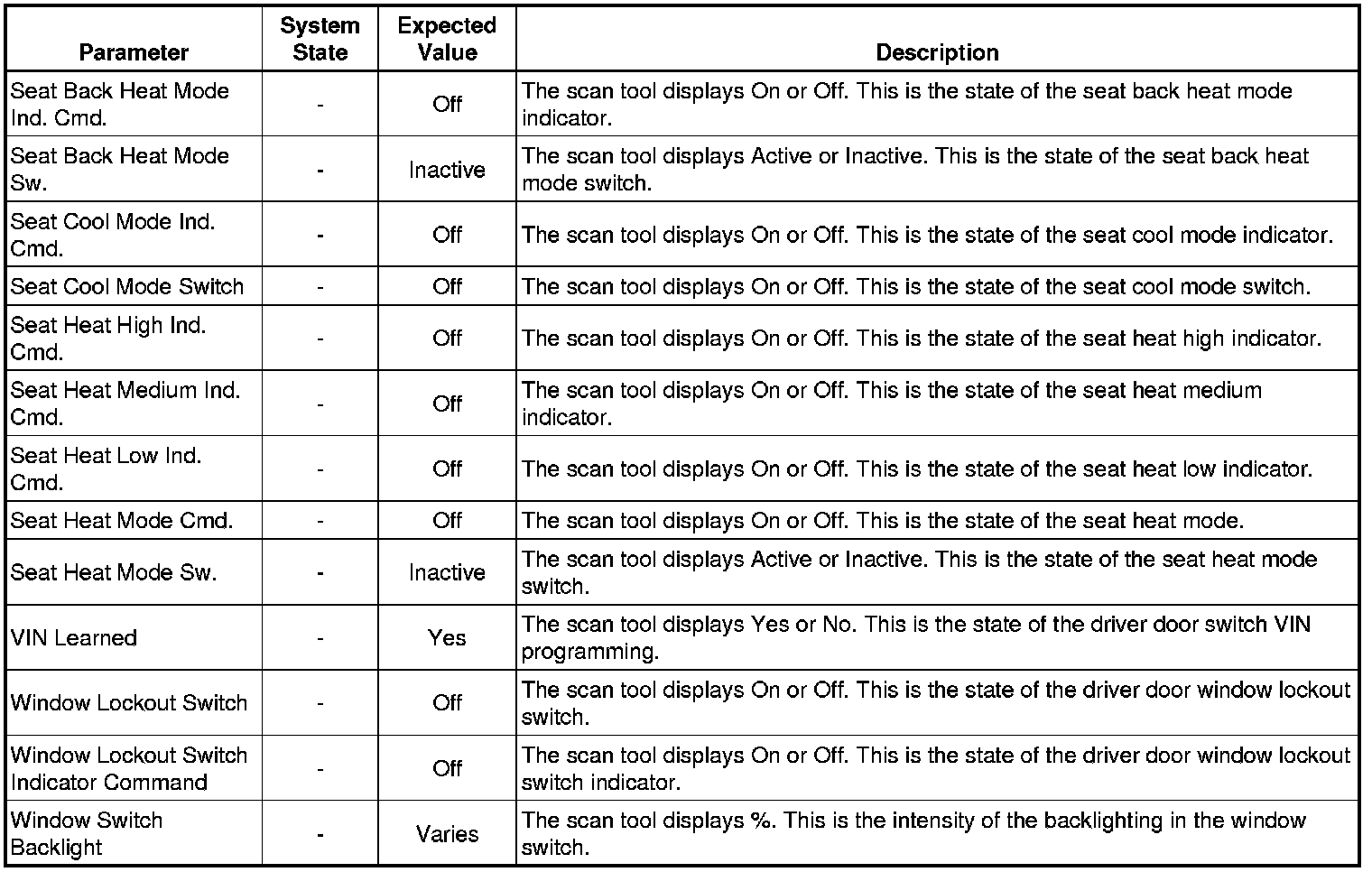 Door Lock Control Module Scan Tool Information (Driver Door Switch)