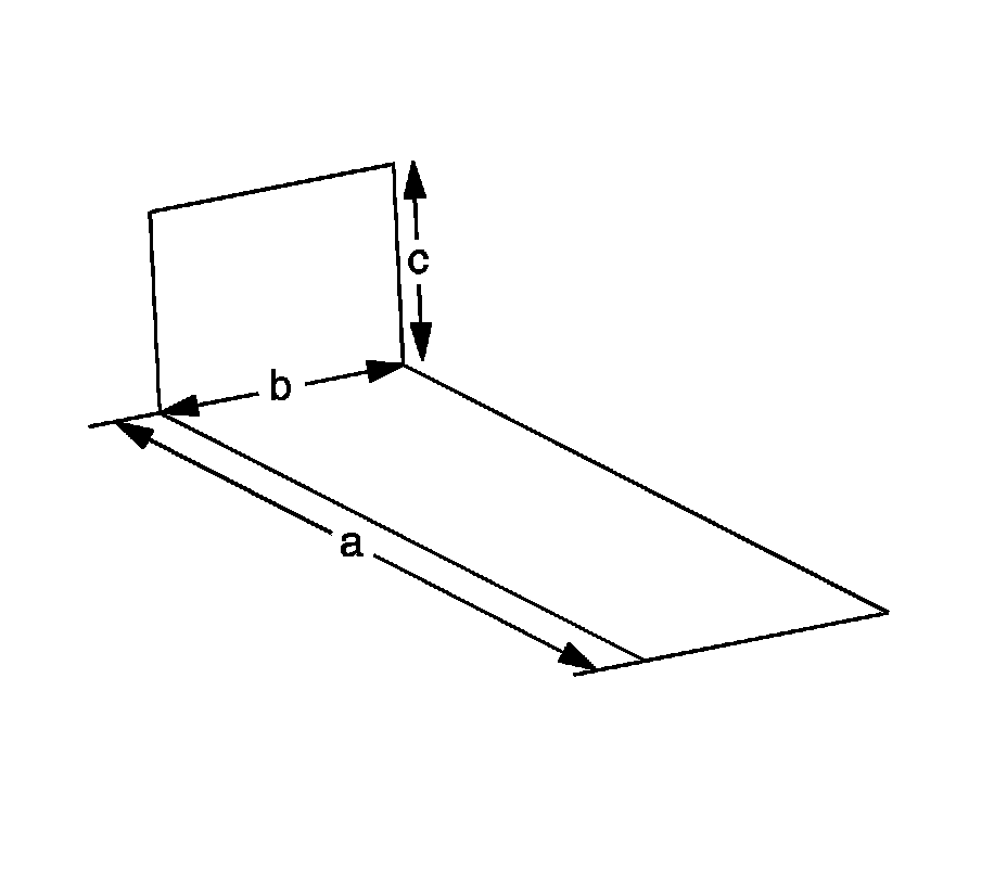 * The area needed for aiming of the DSCC will consist of a vertical wall and a level surface 8 m (26 ft 2 in) in length (a), 3 m (9 ft 9 in) in width (b), and 2 m (6 ft 6 in) in height (c).