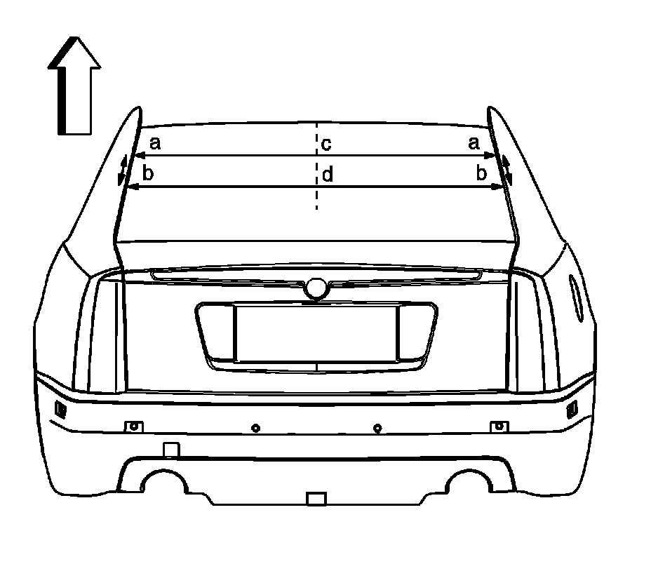 3. Mark two points (a, b) on the left side of the rear window glass from the roof sheet metal using an erasable marker or chalk. Measure the same distances on the opposite side from the roof sheet metal and draw two lines across the rear window glass connecting points a and b.