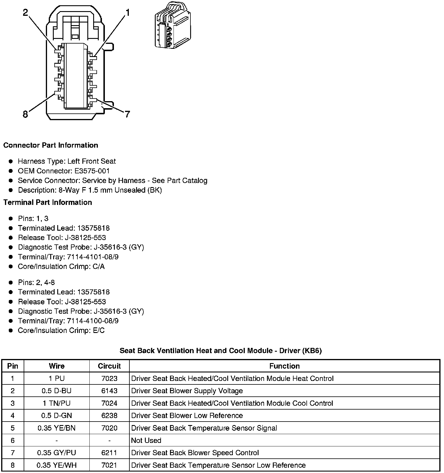 Seat Back Ventilation Heat and Cool Module - Driver (KB6)