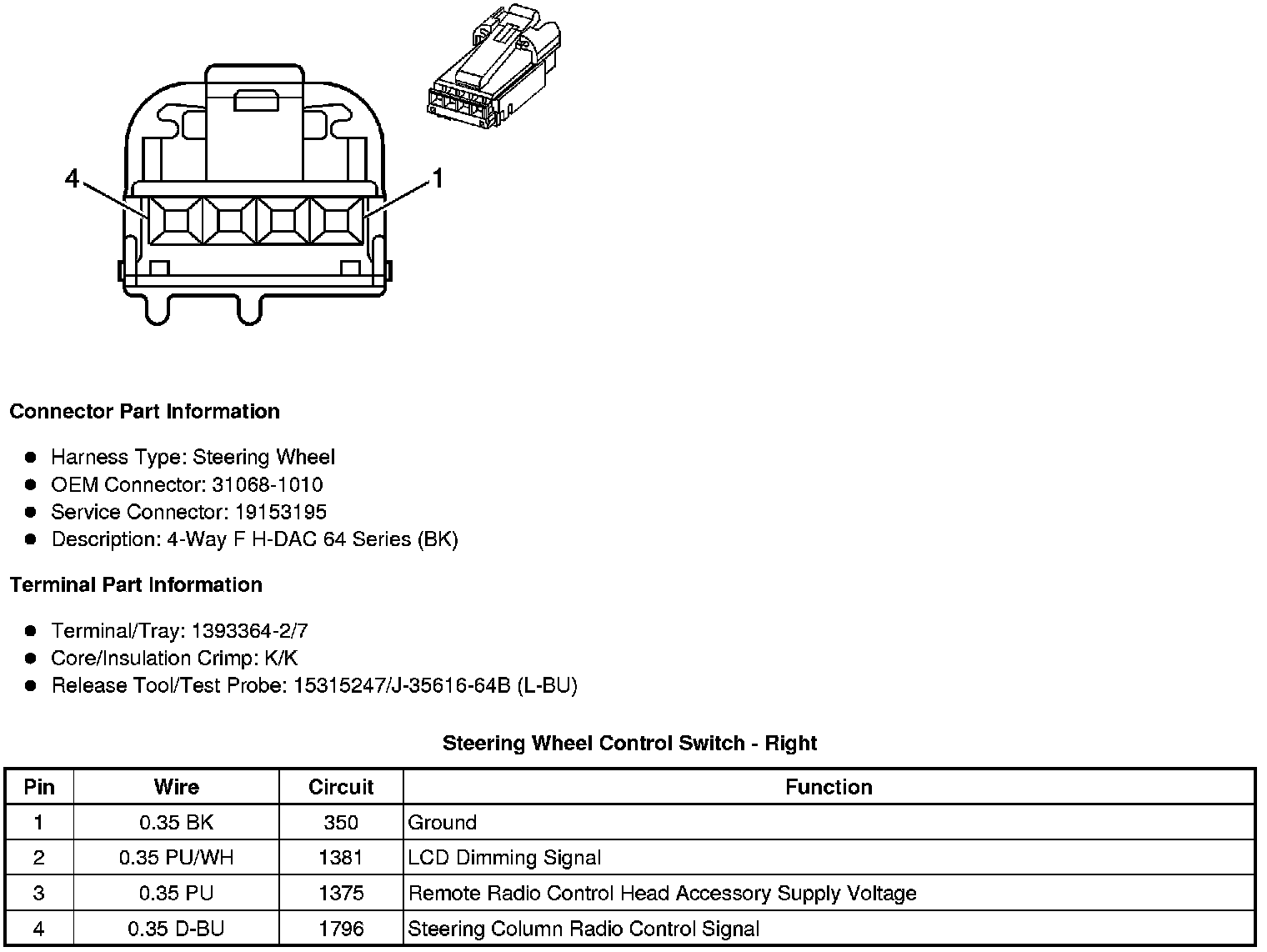Home >> Cadillac >> 2011 >> DTS V8-4.6L >> Repair and Diagnosis >> Diagrams >> Connector Views >> Steering Mounted Controls Transmitter