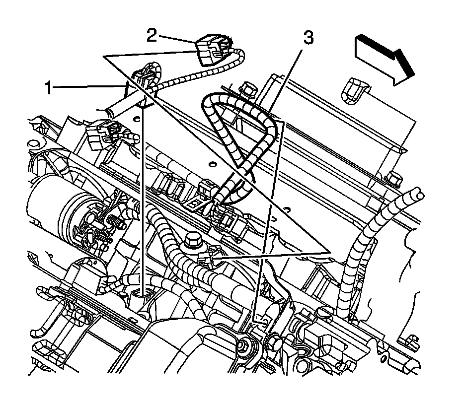 2. Disconnect the electrical connector (3) from the right knock sensor, if required.