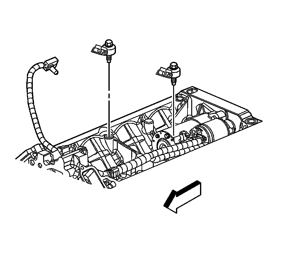 4. Remove the appropriate knock sensor. Cylinder heads shown removed for clarity.