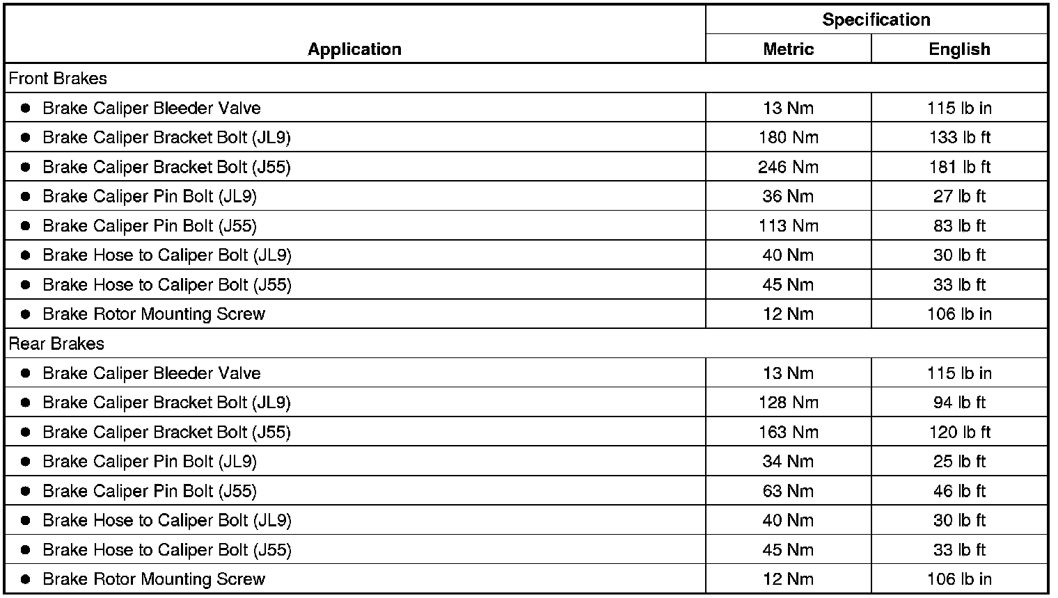 Fastener Tightening Specifications