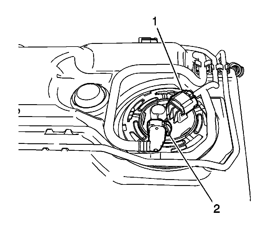 6. Connect the evaporative emission line (2). Refer to Plastic Collar Quick Connect Fitting Service (Plastic Collar Quick Connect Fitting Service).