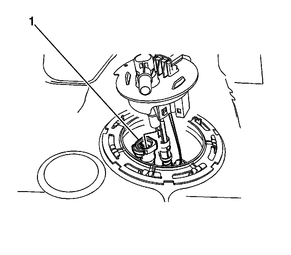 6. Disconnect the evaporative emission line (1). Refer to Plastic Collar Quick Connect Fitting Service (Plastic Collar Quick Connect Fitting Service).