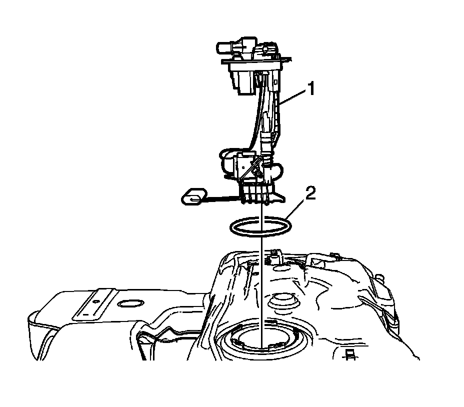 1. Install a NEW O-ring (2) and the primary fuel tank module (1).
