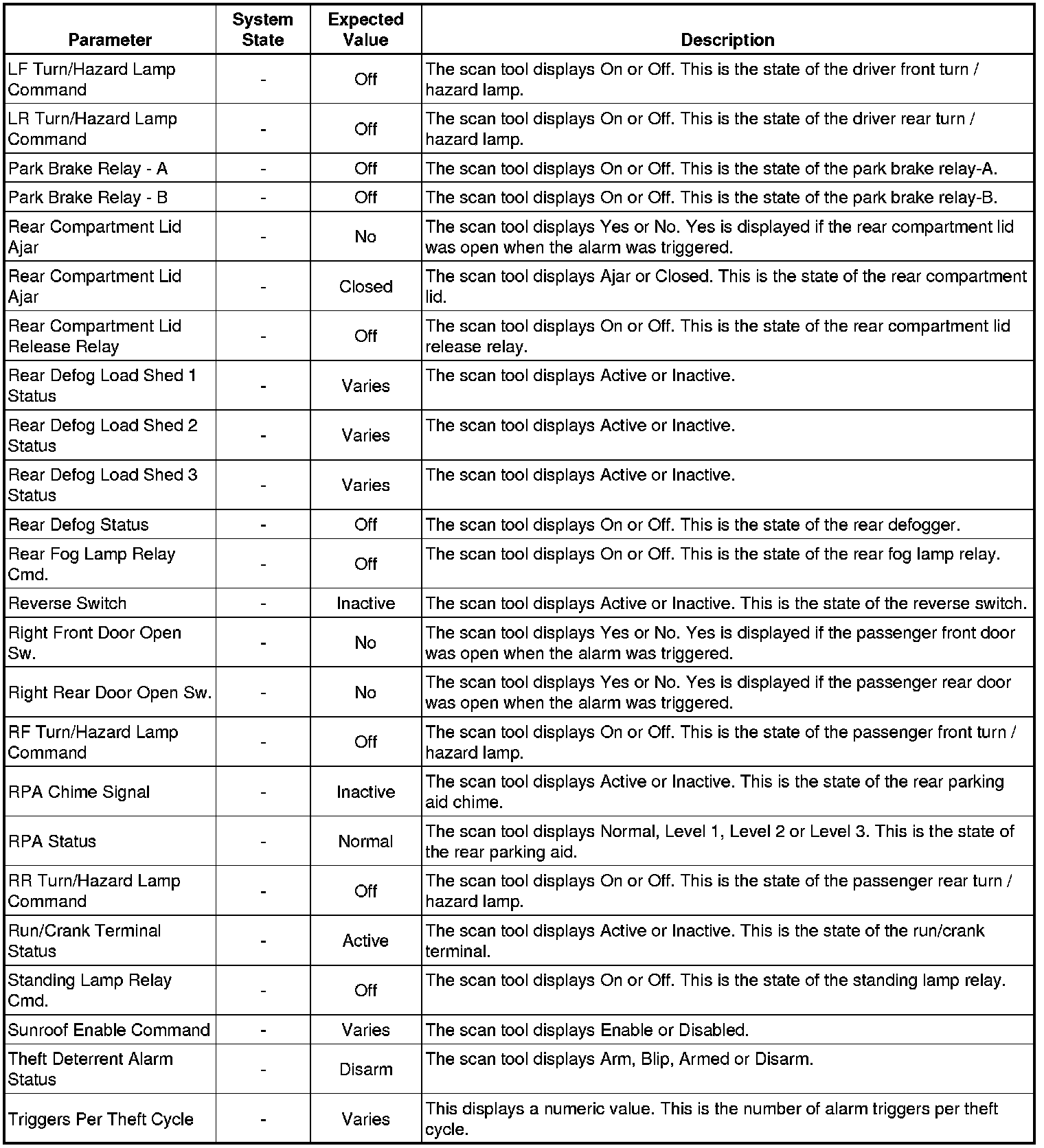 Rear Body Control Module Scan Tool Information