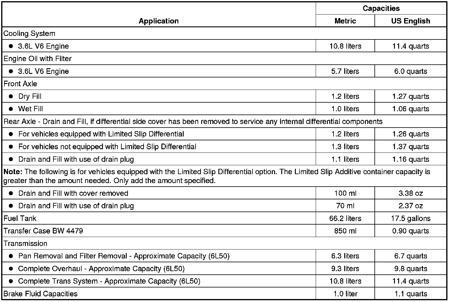 Home >> Cadillac >> 2011 >> STS AWD V6-3.6L >> Repair and Diagnosis >> Maintenance >> Specifications