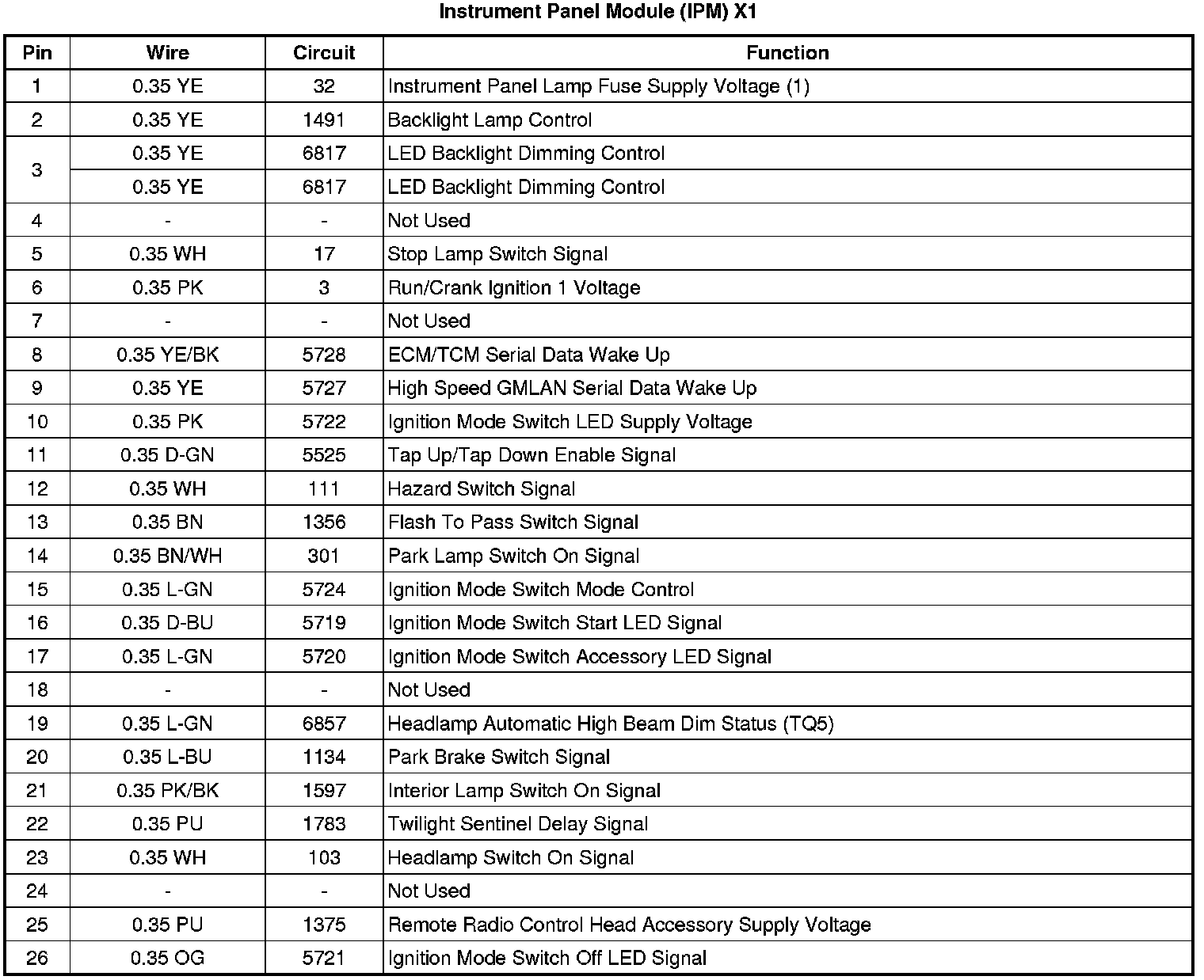 Instrument Panel Module (IPM) X1