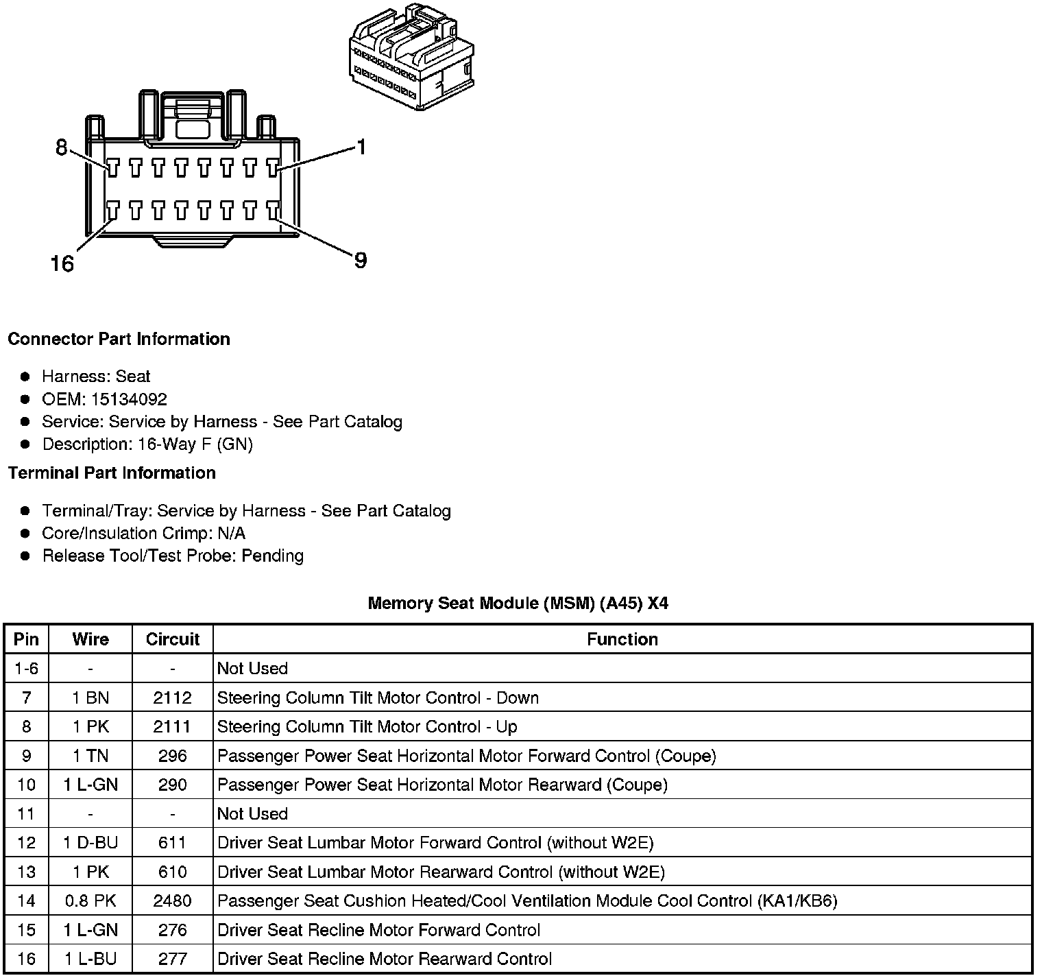 Memory Seat Module (MSM) (A45) X4