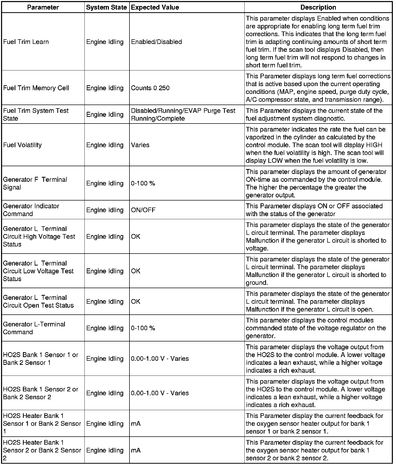 The scan tool values from a properly running engine may be used for comparison with the engine you are diagnosing. The Engine Scan Tool Data List represents values that would be seen on a normally running engine.