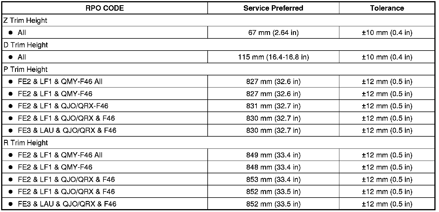 Trim Height Specifications