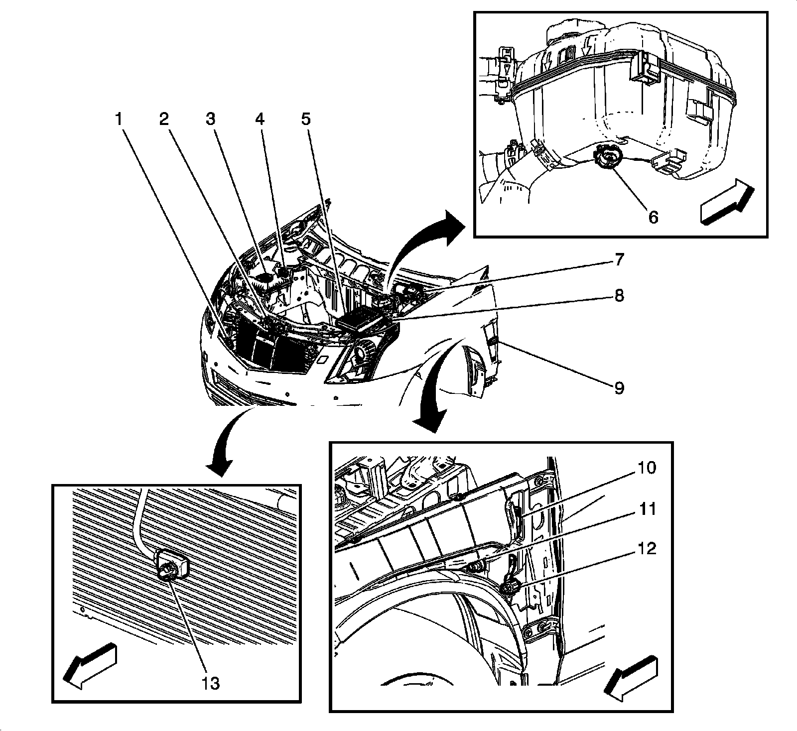 Front of Vehicle/Engine Compartment Component Views