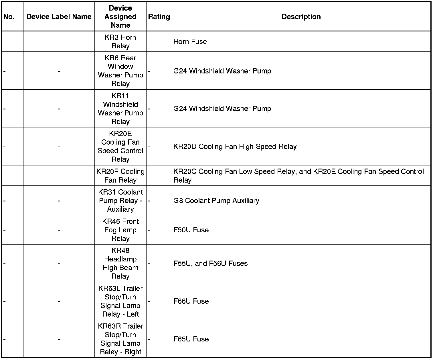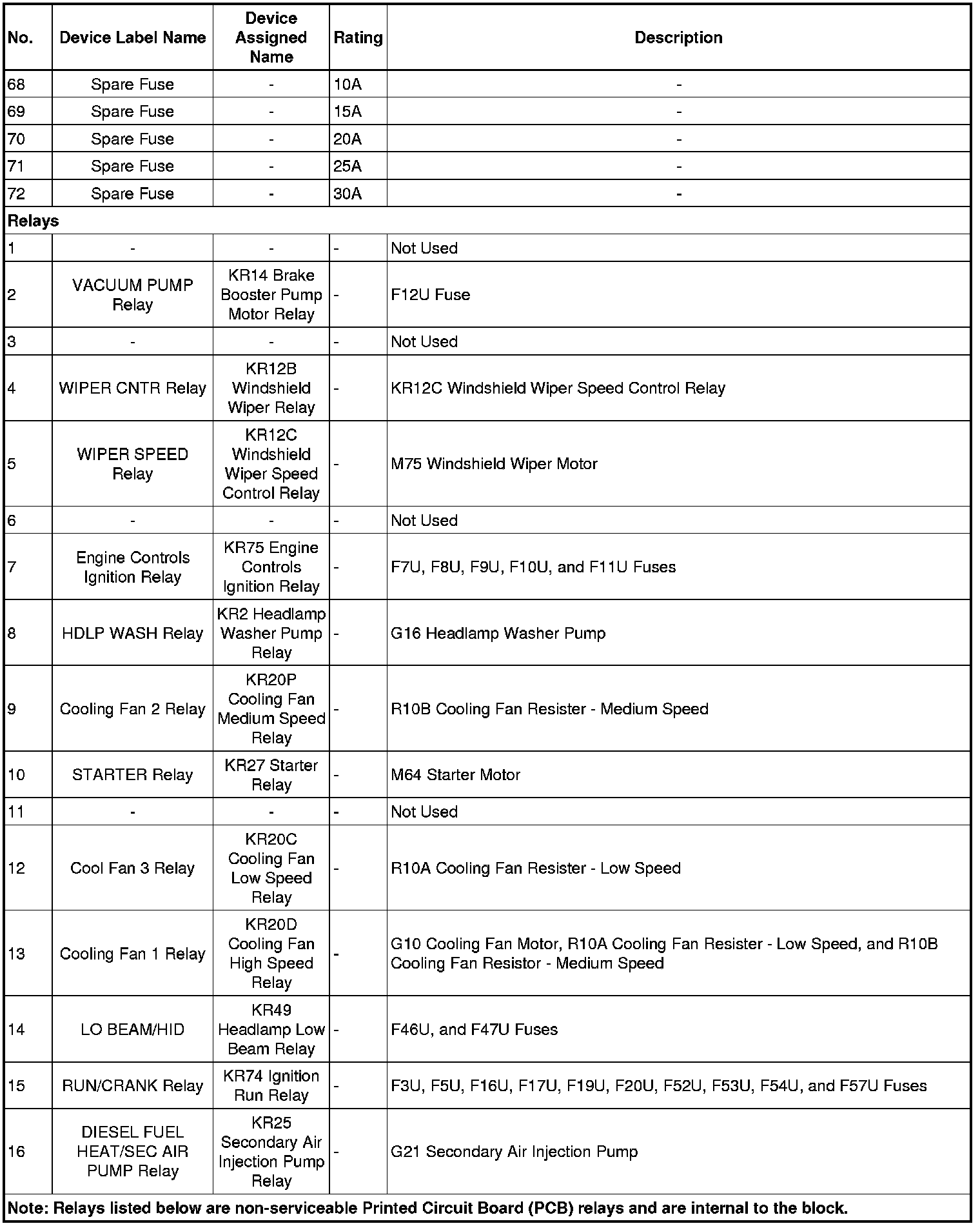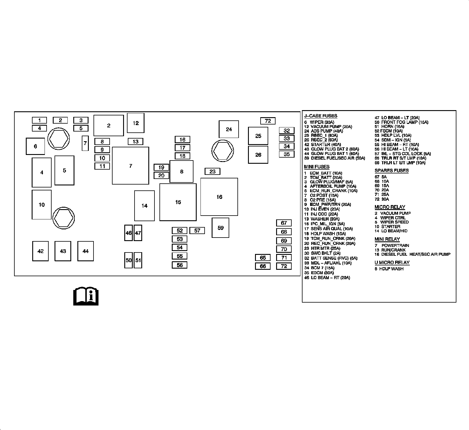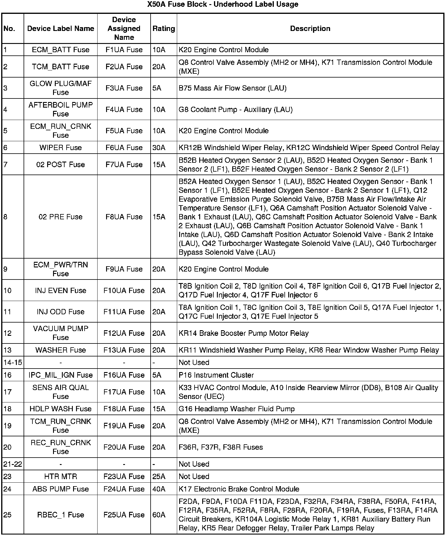 X50A Fuse Block - Underhood Label