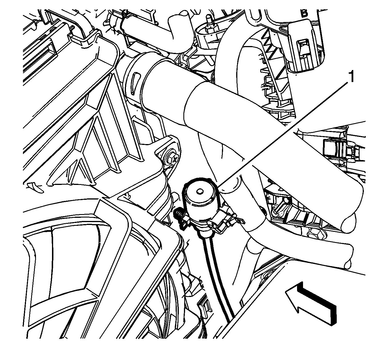 3.If equipped with vacuum controlled engine mounts, disconnect the vacuum filter (1) from the radiator assembly.