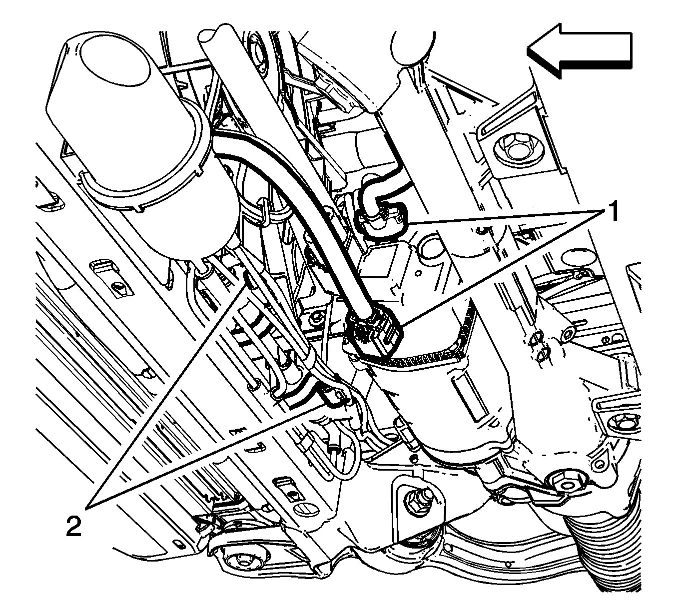 12.Disconnect the electric power steering electrical connectors (1). Refer to FEP Connectors .