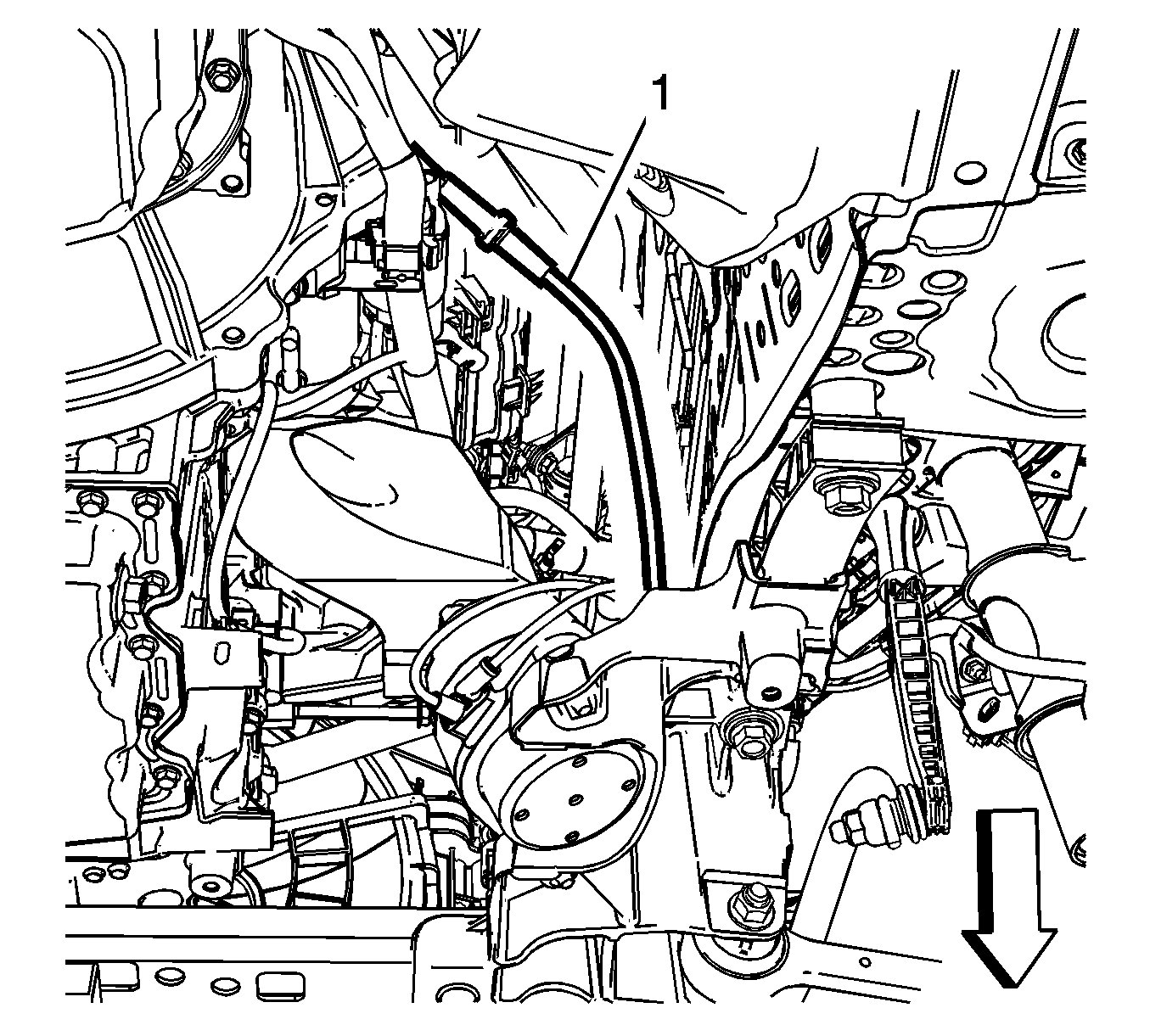 32.If equipped with vacuum controlled engine mounts, transfer the vacuum system (1) from the frame.