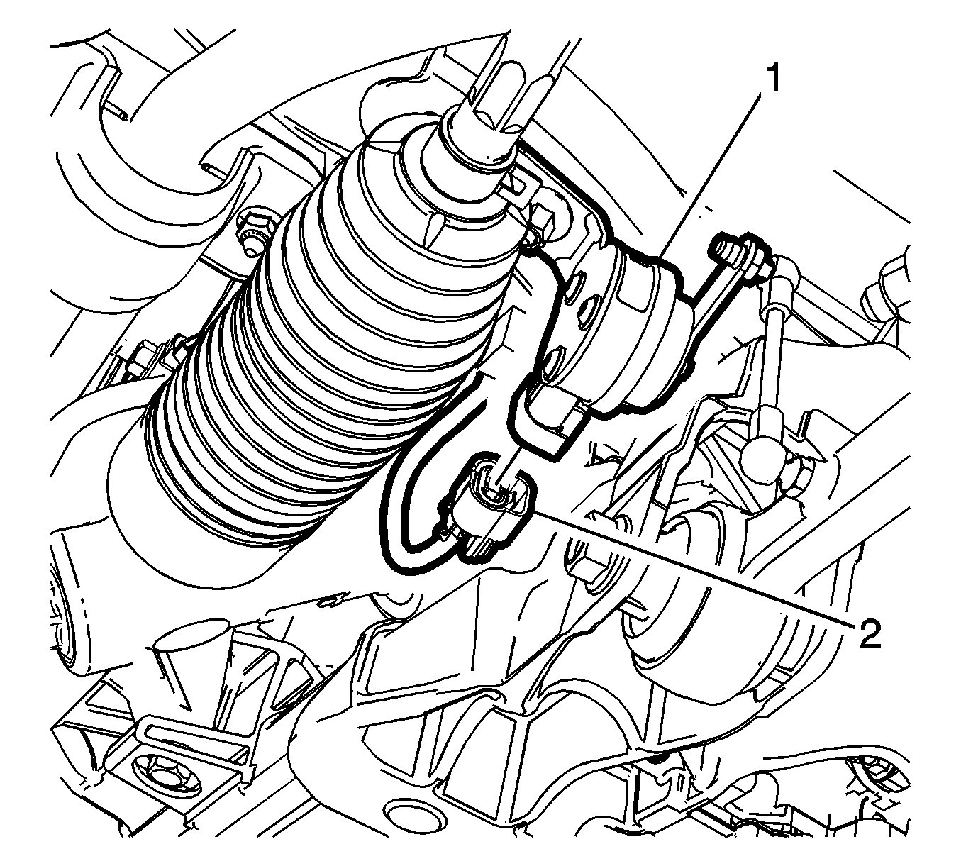 13.Disconnect the lower steering intermediate shaft (1) from the electric power steering assembly (2). Refer to Intermediate Steering Shaft Replacement .