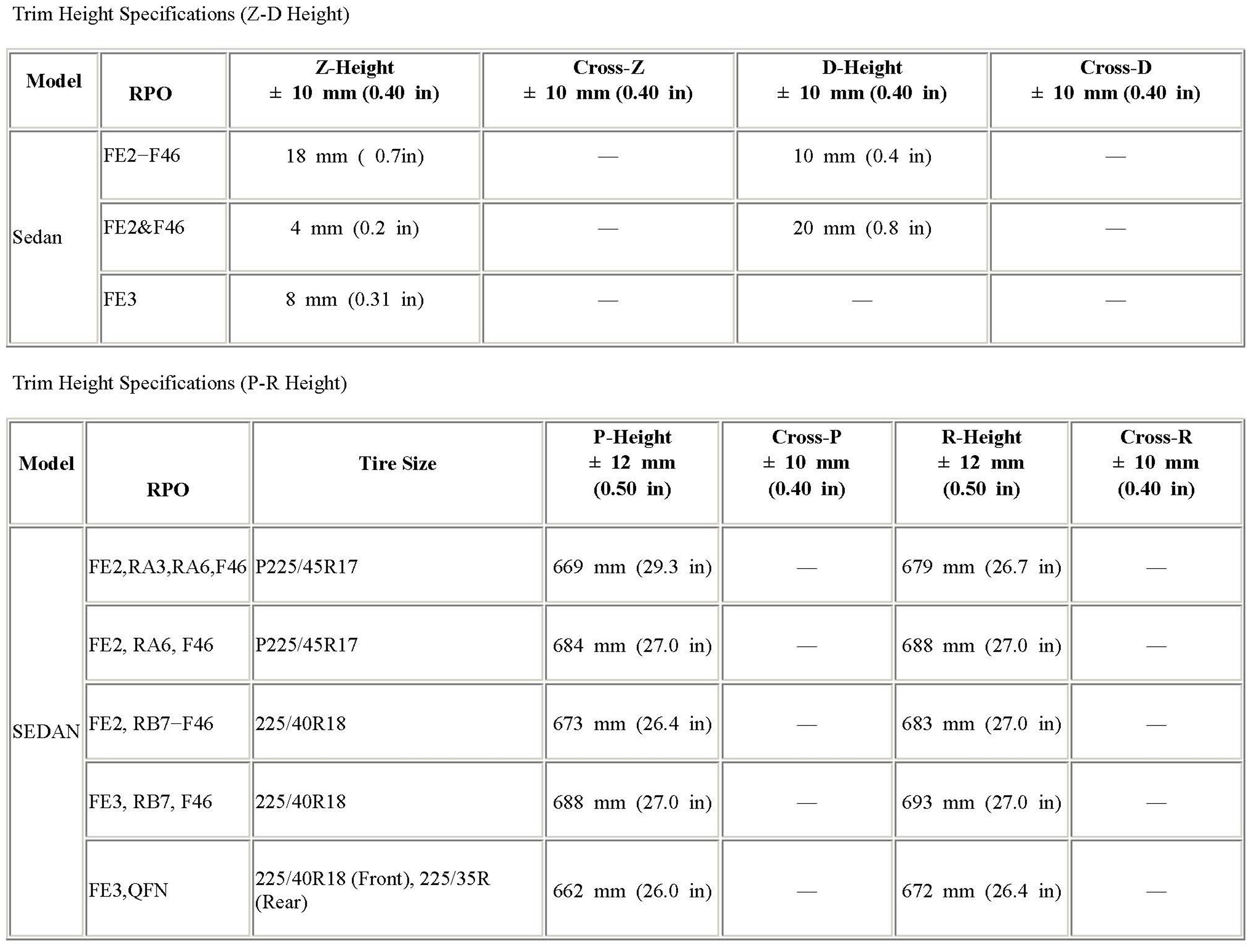 TRIM HEIGHT SPECIFICATIONS
