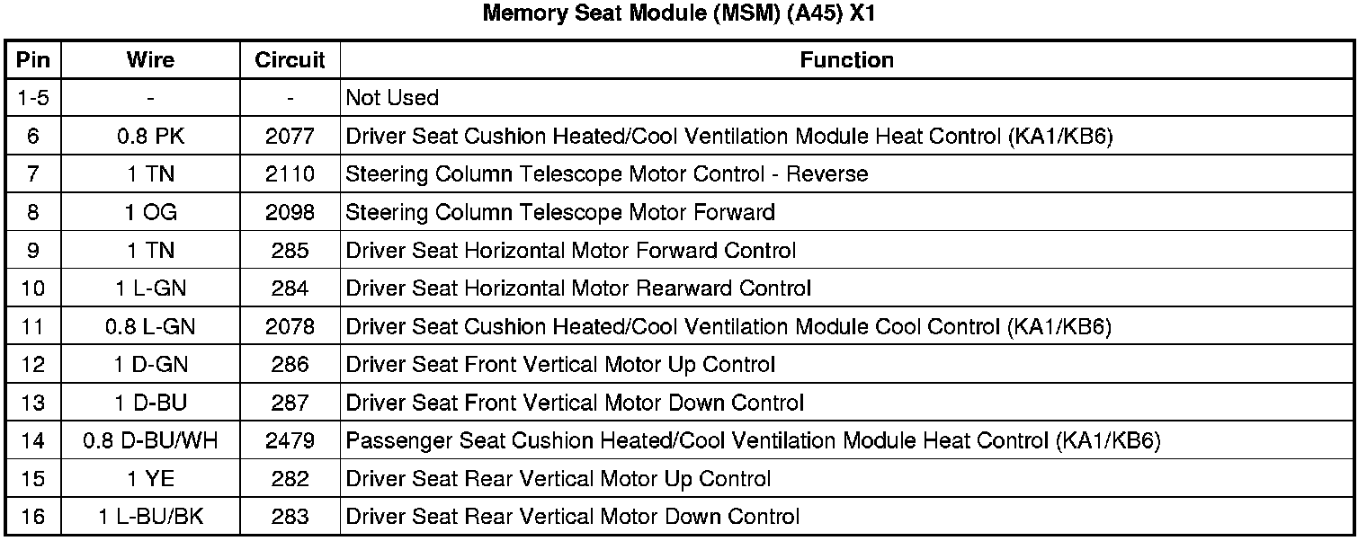 Memory Seat Module (MSM) (A45) X1