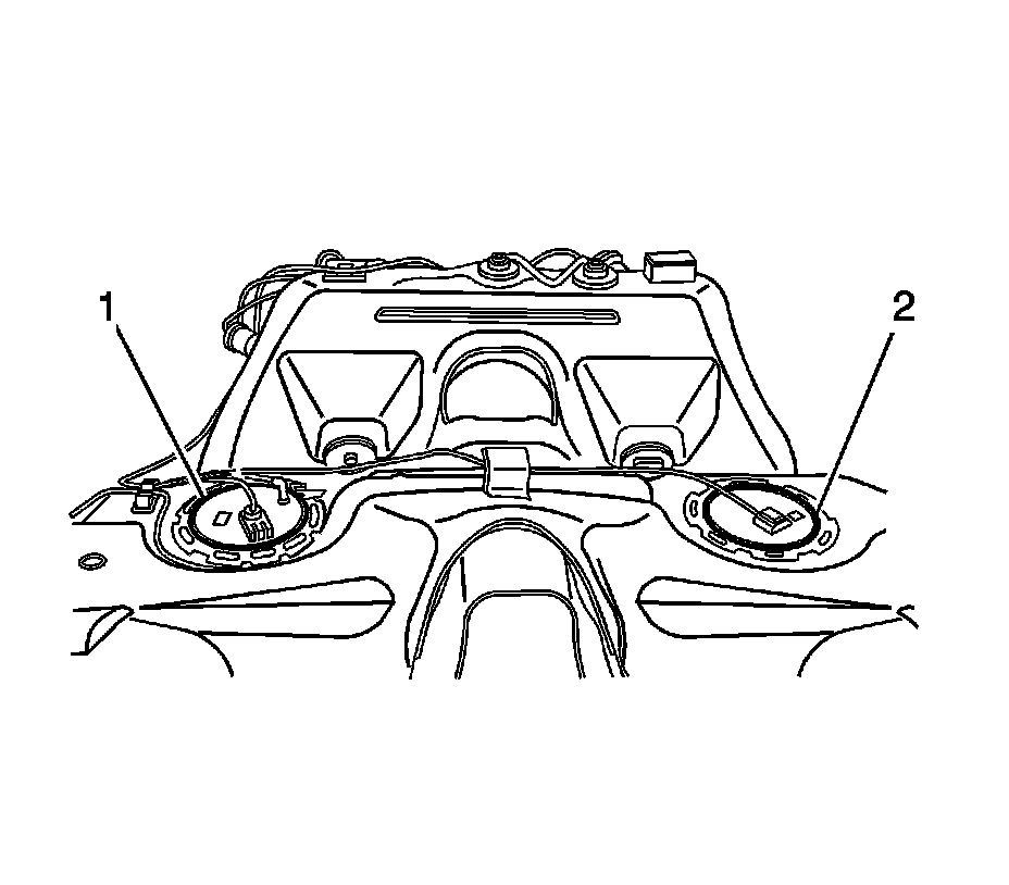 1. Remove the fuel tank in order to gain access to the secondary fuel tank module (2). Refer to Fuel Tank Replacement Removal and Replacement.