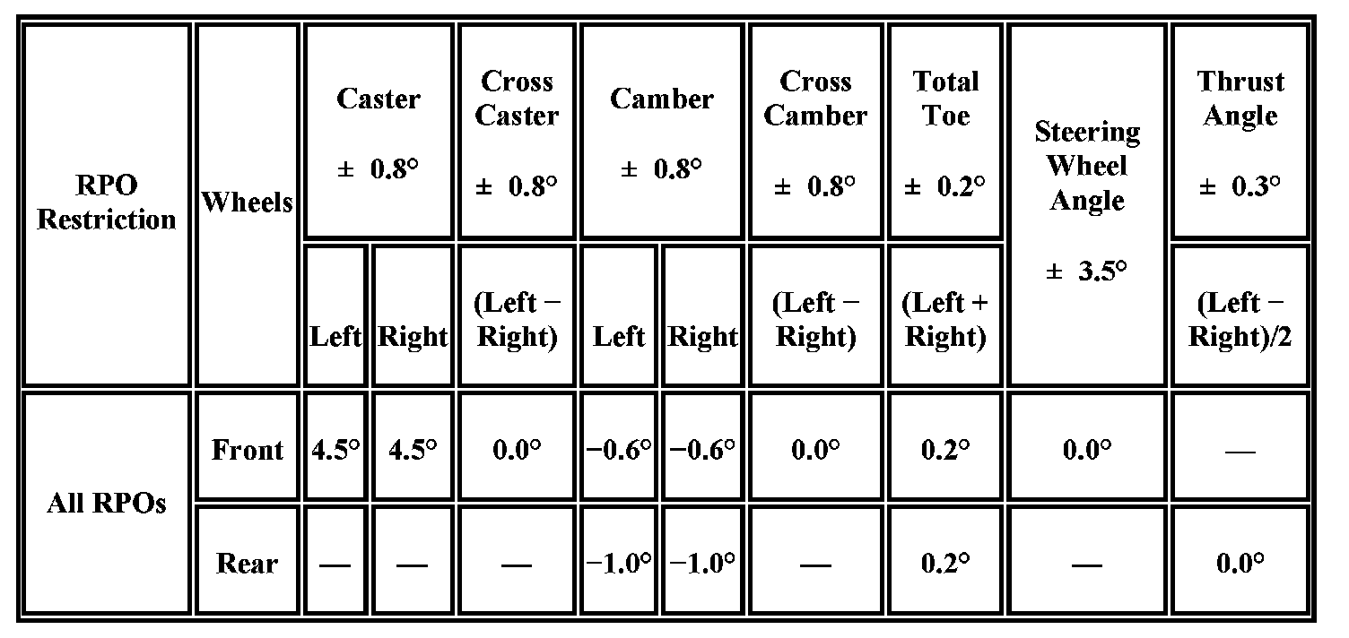Wheel Alignment Specifications