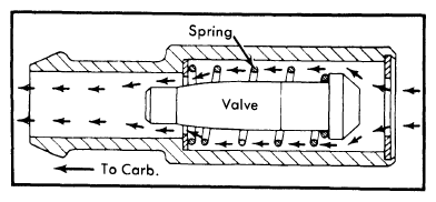 The ventilator valve (See Fig 2) is constructed so it is held closed by spring pressure when engine is not running. This prevents an accumulation of hydrocarbon fumes from collecting in the intake manifold, which results in hard starting.
