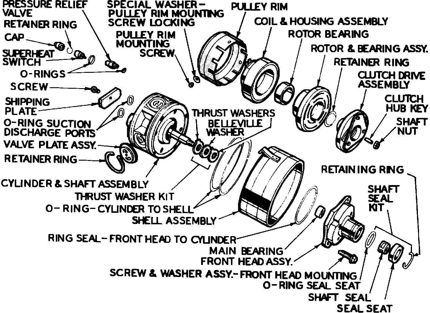 Fig. 1 Delco Air R-4 radial compressor exploded view: