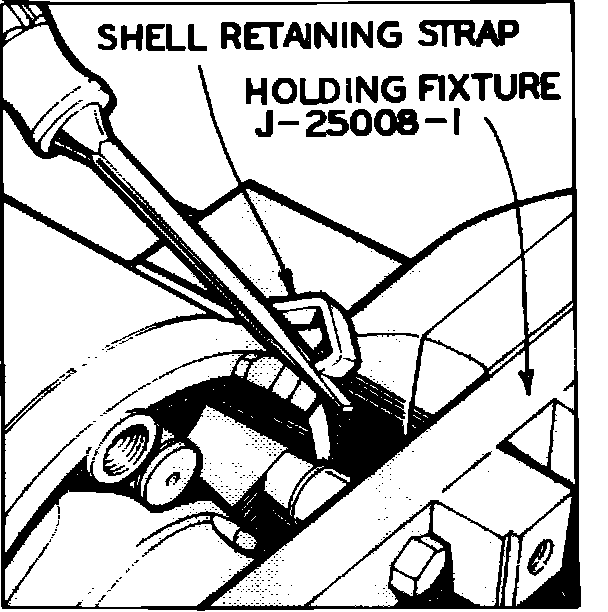 1. Pry shell retaining strap from cylinder and position strap to clear cylinder when shell is removed, Fig. 23.