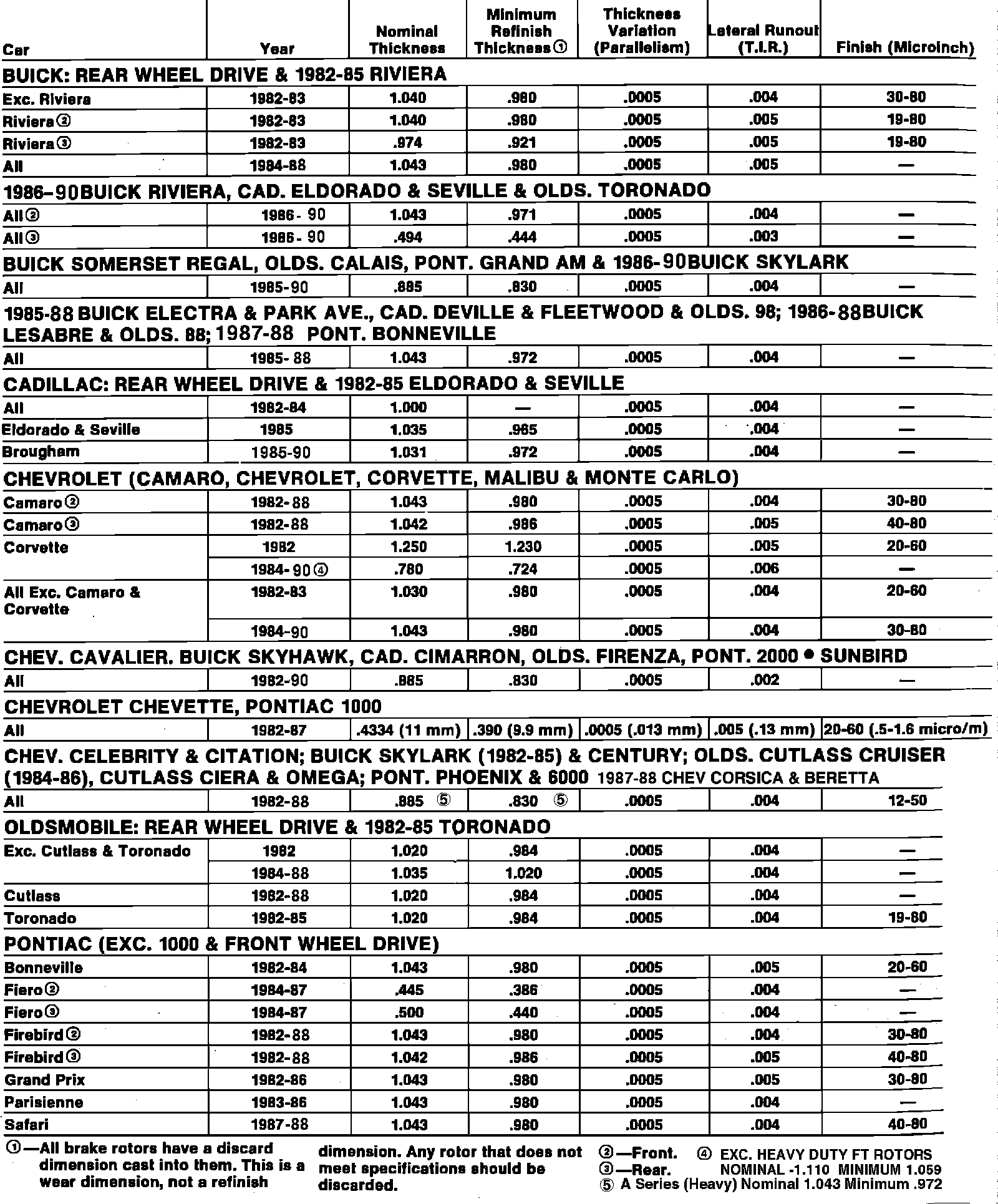 Fig. 1 DISC BRAKE ROTOR SPECIFICATIONS: