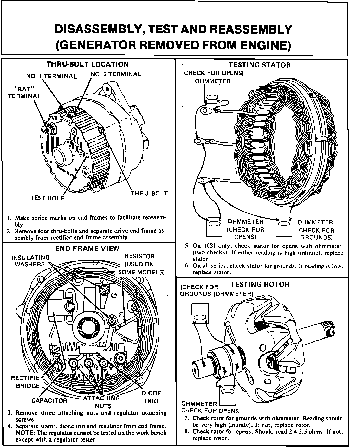 4. Separate stator, diode trio and regulator from end frame.