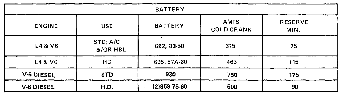Starting and Charging: Specifications
