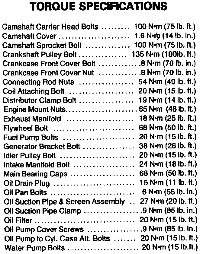 Torque Specifications: