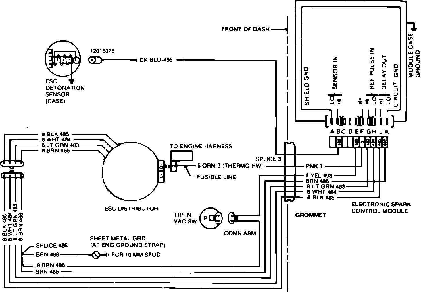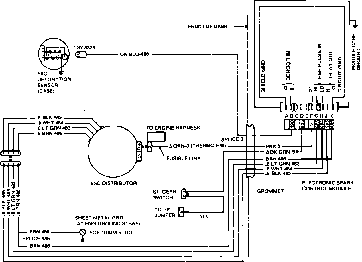 Fig. 5 ESC system wiring schematic. 1984-86 models w/manual 4 speed top loader transmission: