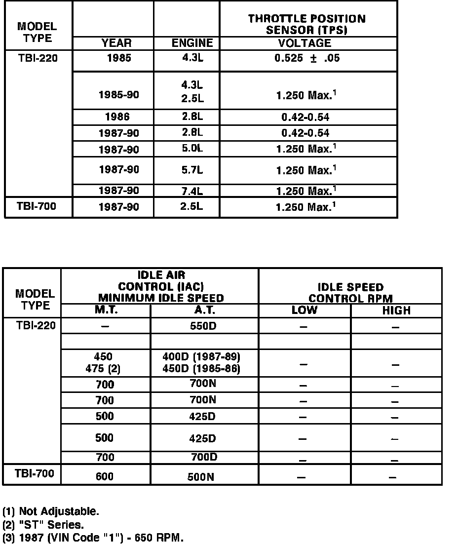 Fuel Injection Specification Chart.:
