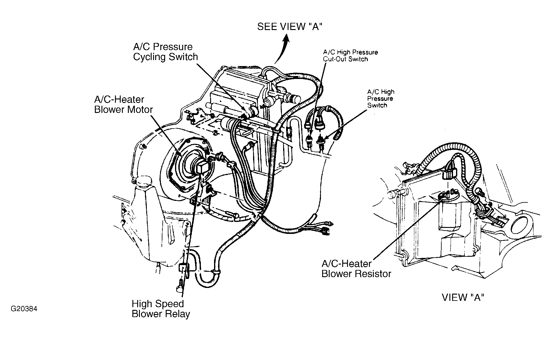 A/C-Heater Blower Resistor On A/C-heater plenum, in engine compartment. See Figure.