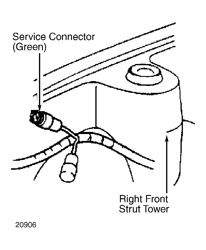 | Service Connector (Green) | In wiring harness near right front strut tower. See Figure . |