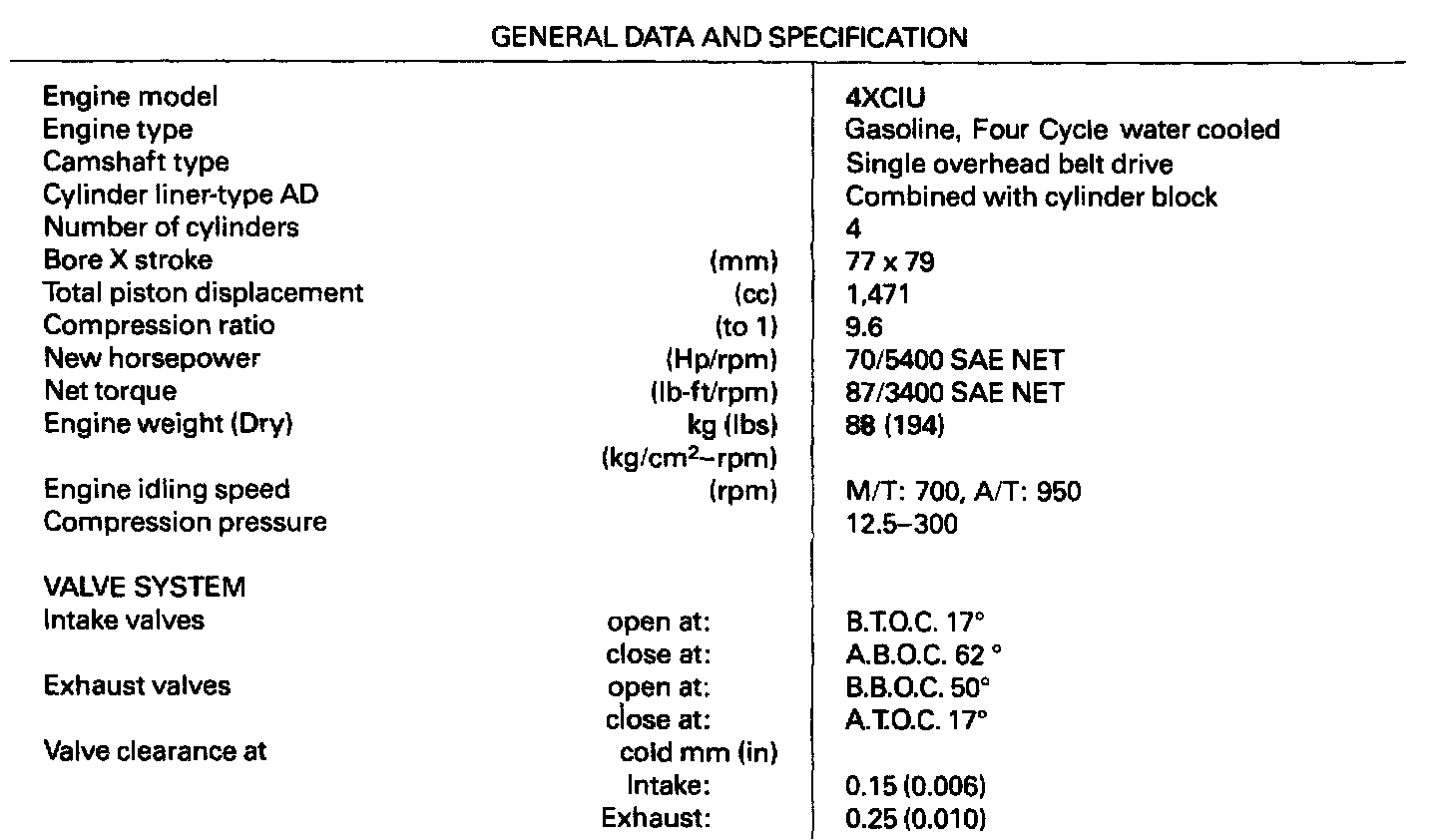 Engine Specifications: