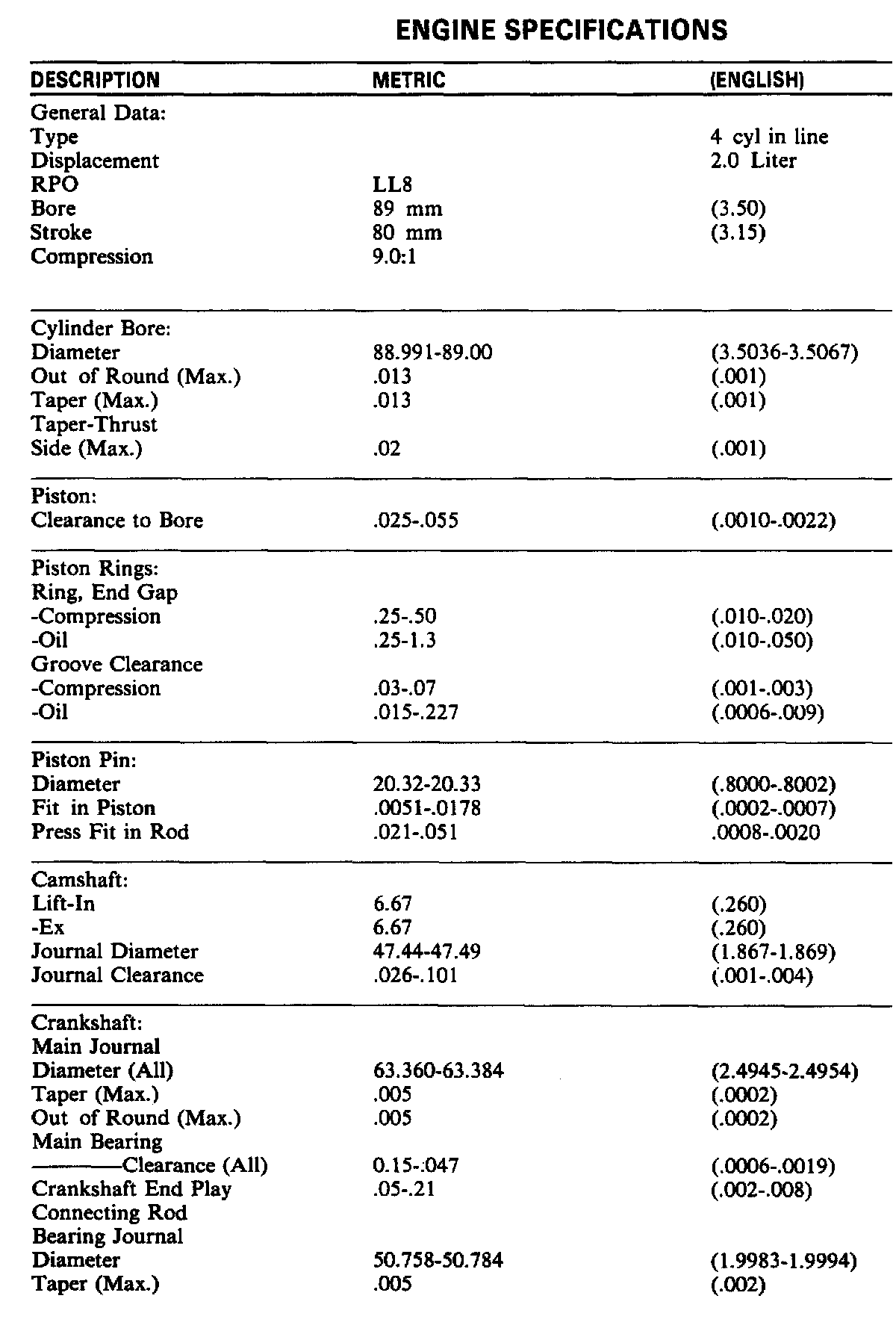Engine Specifications:
