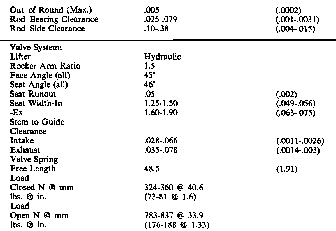 Continued Engine Specifications:
