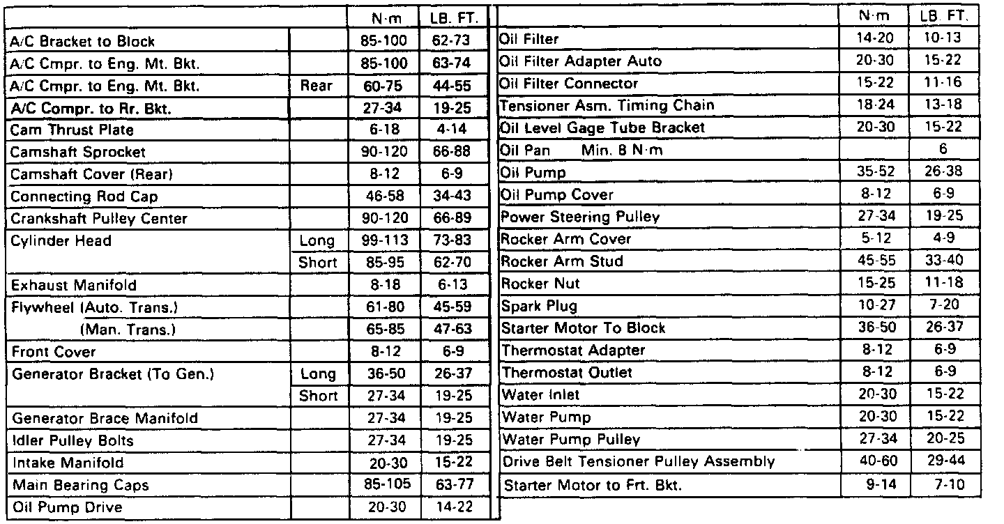 Torque Specifications:
