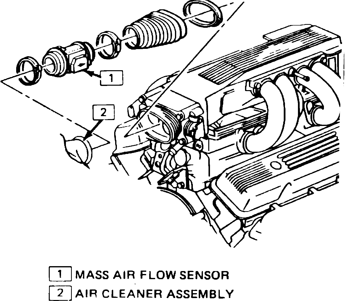 Fig. 345 MAF sensor removal. V8 engines, Camaro & Firebird w/V6-173 (2.8L) similar: