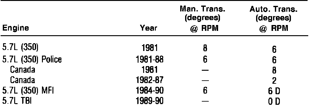 Ignition Timing: Specifications