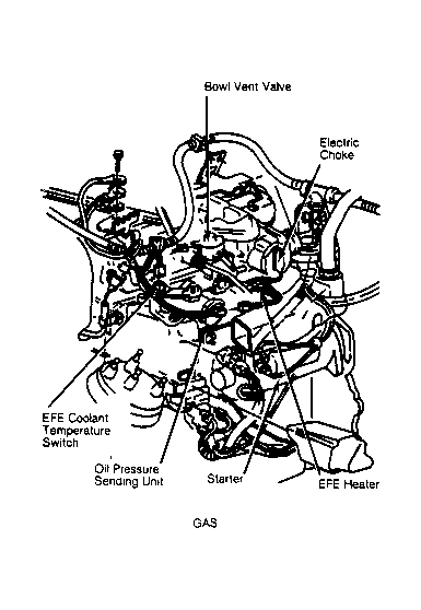 | EFE Heater | Below carburetor on intake manifold. See Figure. |