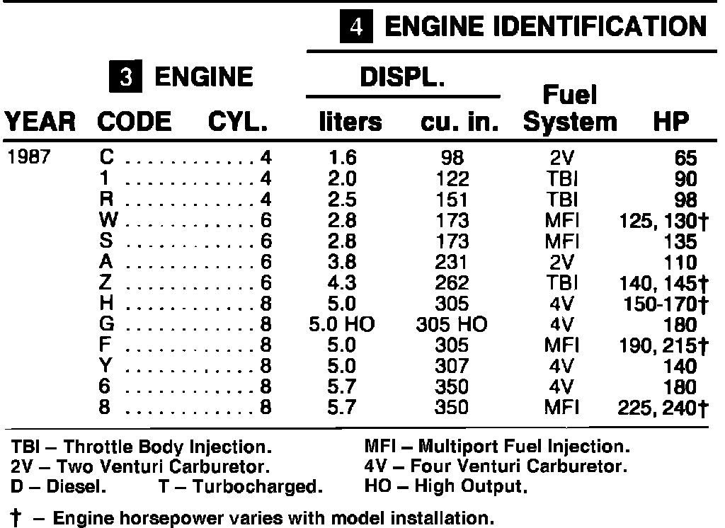 Engine Identification - 1987: