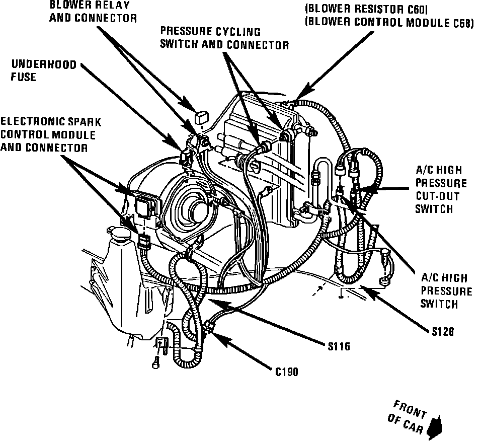 RH Front Of Dash, On RH Side Of Blower Motor